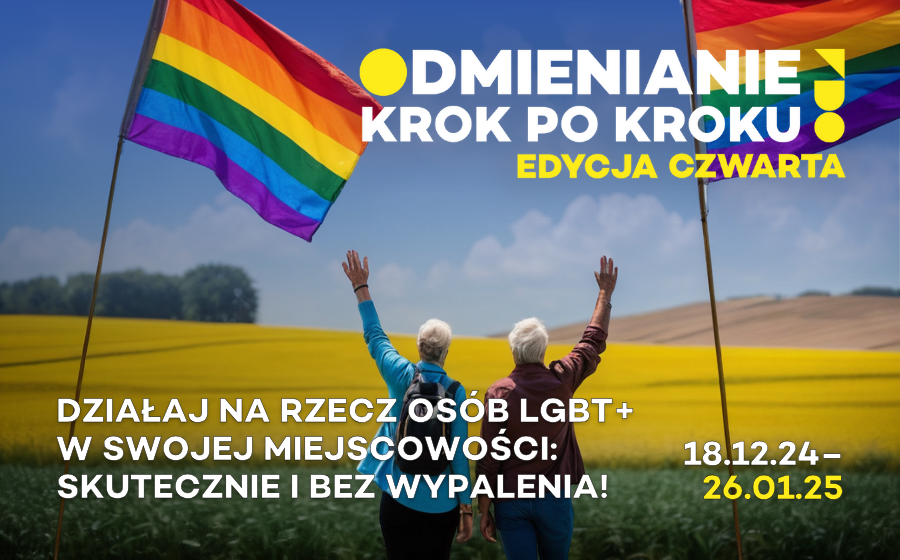 Niezależnie od tego, czy masz już za sobą pewne doświadczenia, czy to dopiero Twoje pierwsze kroki; niezależnie, czy czujesz, że lokalny aktywizm LGBT jest dla Ciebie, czy nie; niezależnie, czy mieszkasz w mieście, czy na wsi: to nie ma większego znaczenia. Liczy się to, że chcesz coś zmienić. Że dostrzegasz coś, co wywołuje w Tobie myśl: „Nie mogę dłużej stać z boku”, albo po prostu pragniesz działać, mówiąc: „Chcę zrobić coś dla osób LGBT+”. Jeśli czujesz, że to o Tobie, Odmienianie krok po kroku jest właśnie dla Ciebie.