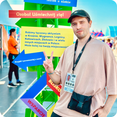 Jestem gejem. Urodziłem się w Ostrowie Wielkopolskim, działam w Białymstoku w równościowej organizacji – 9dwunastych. Koordynuję projekty społeczne, antydyskryminacyjne, genderowe, pracuję edukacyjnie z młodzieżą i osobami dorosłymi. W Funduszu opowiadam za organizację konkursów grantowych.